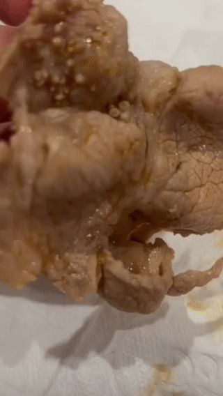 据了解,该款鸭舌为山姆自主品牌。网友称拆开包装食用后,“感觉怪怪的”,再一看被吓了一跳,于是将照片发在了社交平台。