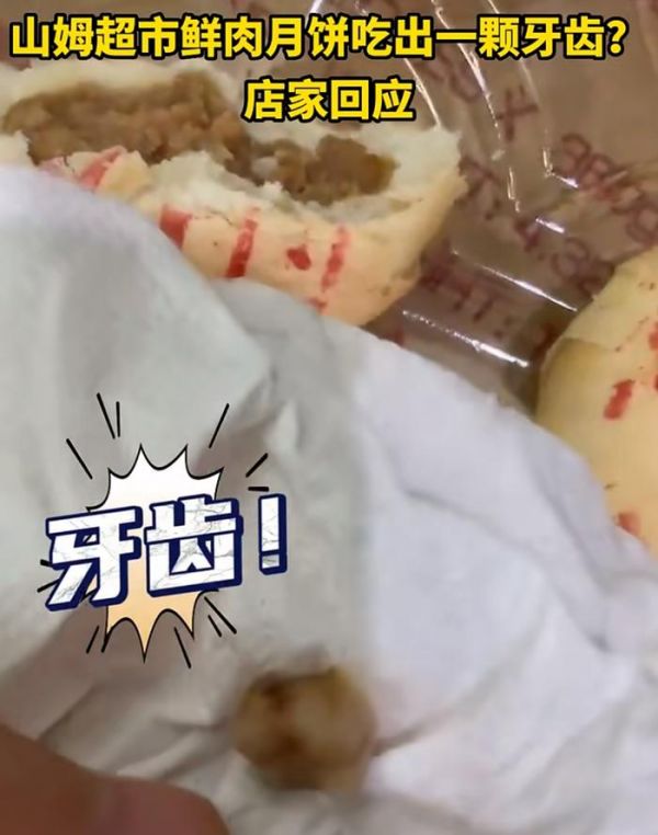 在今年9月,据《深圳商报》报道,江苏常州一女子发视频称在山姆会员店买的鲜肉月饼,竟然吃出一颗牙齿。对此,常州山姆会员店的工作人员回应:管理层已经在处理。