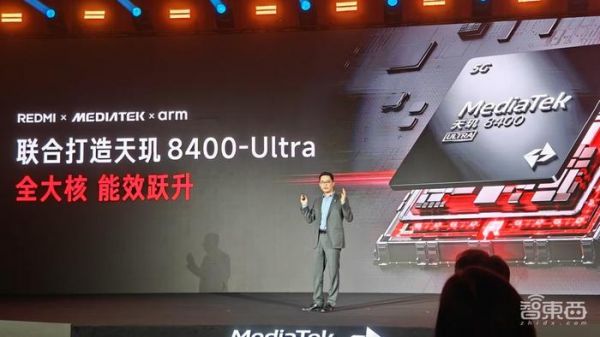 REDMI品牌总经理王腾今天来到了发布会现场,王腾说,REDMI、联发科、Arm三方深度合作,用旗舰的思路去设计天玑8系,包括架构、工艺和缓存,最终他们联合研发了天玑8400-Ultra,该芯片将由REDMI Turbo 4于2025年全球首发。