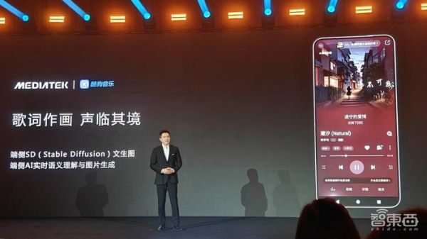 联发科和酷狗音乐合作,通过端侧SD文生图模型,支持了端侧AI实时语义理解与图片生成,该功能可以根据歌词创作图像。