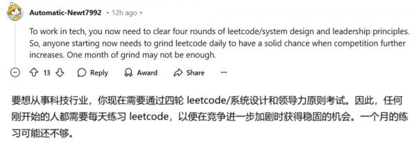一些读者对文章表示认可,表示要在科技行业工作,光有专业技能还不够,还得通过 leetcode / 系统设计和领导力准则考试。