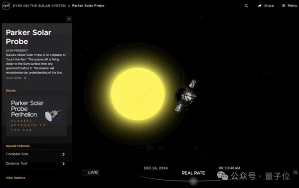NASA Sun官宣,北京时间晚上7时53分,帕克太阳探测器(Parker Solar Probe,PSP)正在飞越新的近日点。