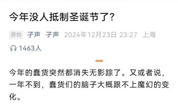 有人说“今年没人抵制圣诞了”,阅读量还很高。我觉得这种认识比较简单化了。