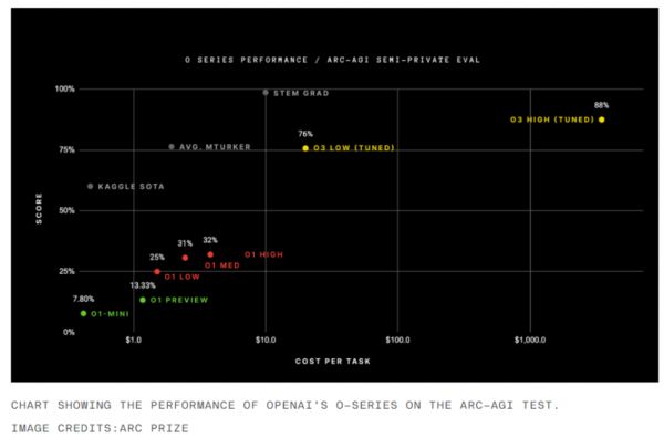 “o3是一个能够适应之前从未遇到的任务的系统,可以说在ARC-AGI领域的表现已经接近了人类的水平,当然,这种通用性的代价很高,且目前还不具备经济效益。”