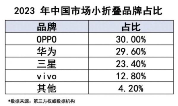 2023年全年,OPPO(含一加)手机以4390万台手机出货量和16%的市场份额稳居市场前三,小折叠产品Find N3 Flip也帮助OPPO在竖折市场斩获第一名,占比高达30%。