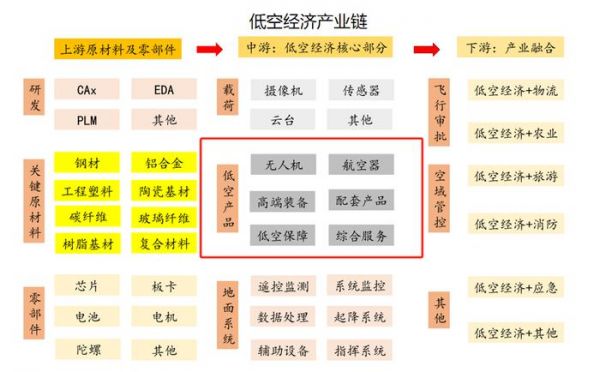 上游聚焦于研发工作,以及关键原材料与零部件的供应;中游起着承上启下的中枢作用,极为关键,主要包含载荷、低空产品以及地面系统;下游则侧重于低空经济与各类应用的融合拓展。