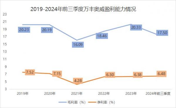 2024年前三季度,万丰奥威毛利率降至17.50%,相较于2023年降低了3个百分点。