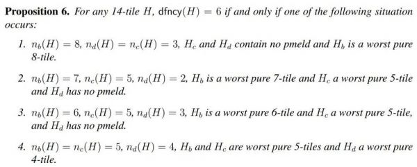 对于常规牌,最大的缺牌数为 6,论文的第四章主要就在讨论和证明这一点。