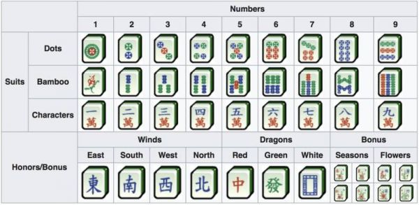 在此论文中,为了简化问题,我们只考虑麻将最基础的打法 Mahjong-0。其他的打法可以用类推的方式处理。在 Mahjong-0 打法中,只有三类牌: