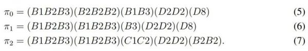 π_0 中的 (B1 B3) 并不能组成顺,因为π_0 中已经有 4 张 B2 了。π_1 和 π_2 都是饱和与可被组合完全的,例如π_1 缺少的牌为: