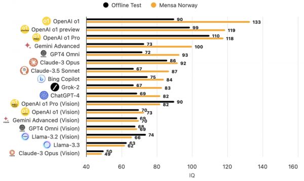 包括前不久尤为备受吹捧的是,OpenAI的o1模型在门萨智商测试中得分更是高达133,超过了大多数人类的智商水平。