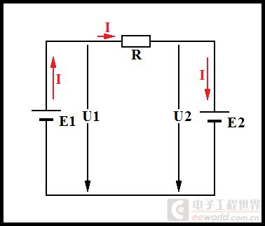 从图(02)中我们可以看出:当电压方向与电流方向相反时(例如上图的左边),能量流出E1,当电压方向与电流方向相同时(例如上图的右边),能量流入E2。
