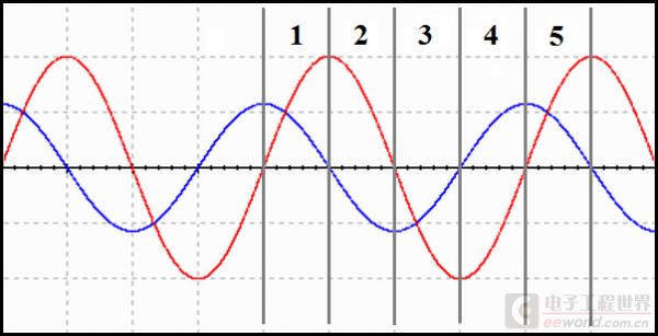 从电流自负而正过零点为时间的开始,阶段1到电压自正而负过零点结束,阶段2到电流自正而负过零点结束,阶段3到电压自负而正过零点结束,阶段4到电流自负而正过零点结束。