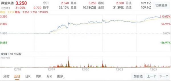 受此消息影响,证券交易市场,多支微信小店“送礼物”功能相关概念股股价一路攀升。其中,微盟集团表现出色,在微信团队公布灰测“送礼物”功能次日,微盟股价一度上涨超50%,最终收盘涨幅35.76%。
