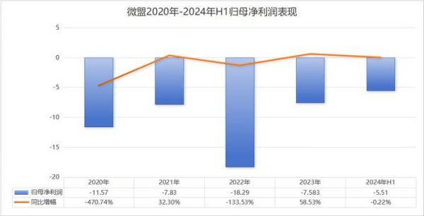 然而,一个值得注意的现象是,自微盟2019年上市后,公司仅在2019年一年实现短暂盈利,随后历年财报发布,均呈亏损状况。2020年—2024年H1,公司分别亏损11.57亿元、7.830亿元、18.29亿元、7.583亿元、5.508亿元,近四年半累计亏损约51亿元。