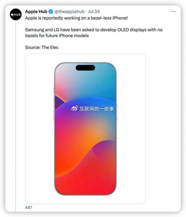 苹果正在研发无边框iPhone 15:将实现零边框