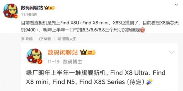 OPPO新机三连发:Find X8 Ultra、mini、S版,均明年上半年发布!
