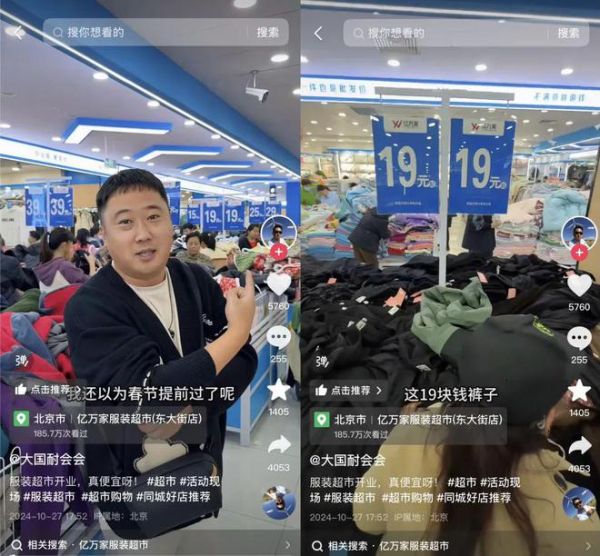 视频主角就是被偏僻选址耽误的宝藏小店亿万家服装超市,它今年10月入驻北京大兴,但直到这条视频发出后才火出圈,停车场日日爆满。