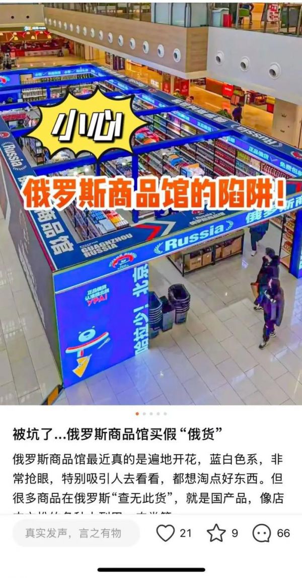 但近期,在这些俄罗斯商品馆里,不全是俄货、有不少国内代工产品的现象,引发不少网友“避雷”。