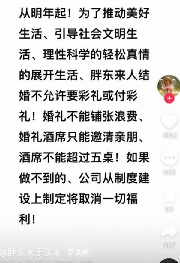 实际上,胖东来今年最高的热度,出现在今年最后两个月。因为一番“胖东来人结婚不允许要彩礼或者付彩礼”的言论,它在微博热搜榜挂了840个小时。有人说它“爹味”和“管太宽”,也有人为它辩护,说这是对员工的一种保护以及对社会风气的净化。