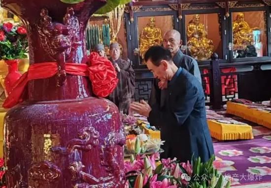 这位昔日叱咤风云的地产大佬身穿一身简单的衣服,独自坐在角落里焚香祈福。