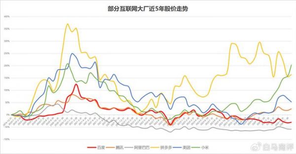 成功跨界造车的小米、业绩持续亮眼的拼多多强势反弹;扭亏为盈的美团、护城河稳固且重回增长的腾讯从底部走出;百度、阿里却仍在“寻底”。