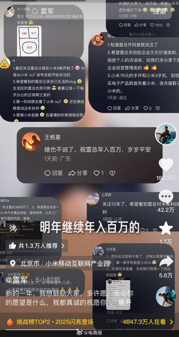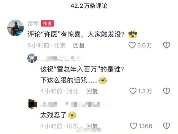 雷军评论区又成许愿池了,还有网友祝他年入百万,雷军回应:谢谢大家…