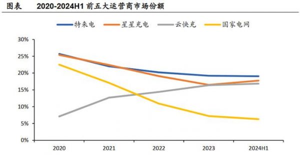 2024年上半年,国内前五大充电桩运营商的市场份额占比达65.4%。