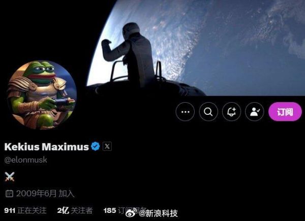 【#马斯克改昵称同名模因币大涨超900%##马斯克改名带来泼天富贵#】据每日经济新闻,外媒报道,埃隆·马斯克12月31日在社交平台X上使用了昵称“Kekius Maximus”。马斯克还把自己的头像换成了流行卡通角色“佩佩蛙”的形象,它身着古罗马服装,拿着电子游戏手柄。报道称,马斯克没有对自己的新昵称和头像做出解释,但这一变化在加密货币圈掀起波澜,一款与新昵称同名的模因币应声大涨,在马斯克更改昵称之后,截至12月31日晚,模因币Kekius Maximus的价格飙升了900%以上。(每日经济新闻)#马斯克改名有人两天狂赚上千万#
