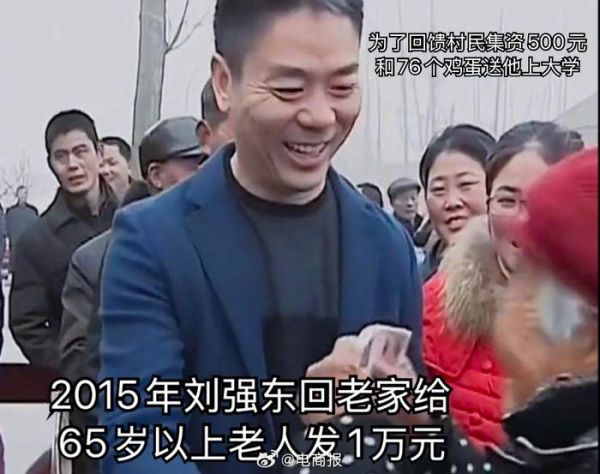 刘强东暴富以后,回乡探亲,村里60岁上的老人,每人发1万块钱……