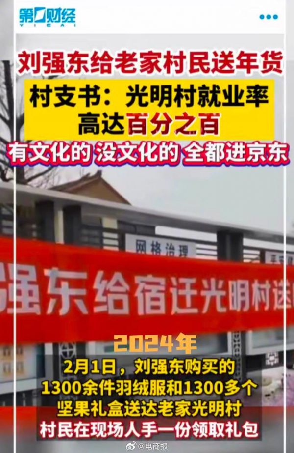 刘强东知恩图报!临近春节,给老家1300户乡亲送年货