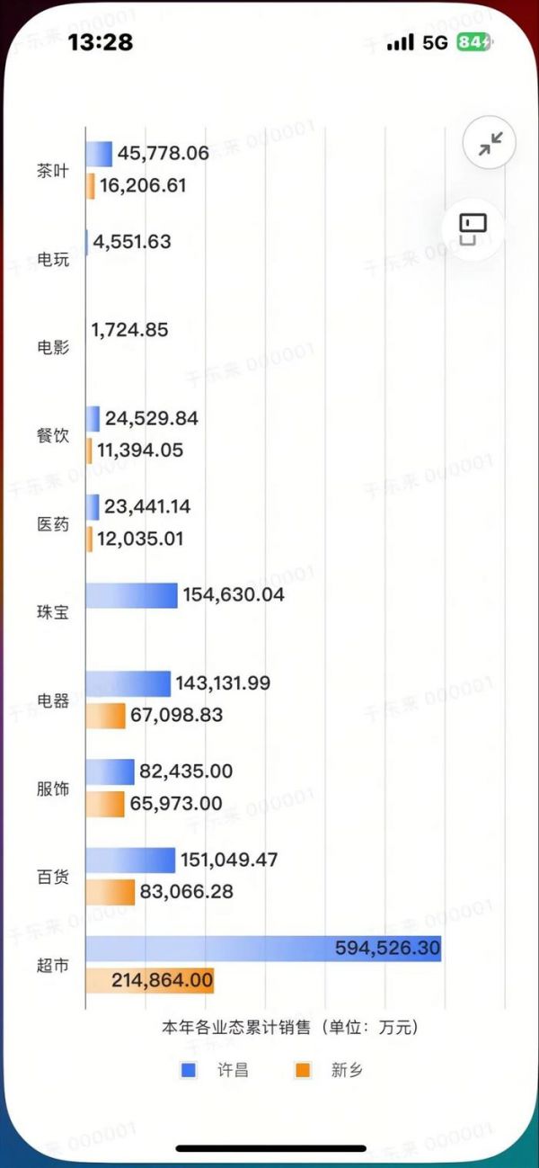 2025年1月1日,胖东来创始人于东来发布胖东来商贸集团2024年销售数据。数据显示,2024年胖东来商贸集团销售额达169.64亿元,各业态中年销售额最高的是超市,许昌达到59.45亿元,新乡为21.48亿元,单品中茶叶销售额为6.19亿元,15个销售场所中时代广场营业额最高,达到44.13亿元。