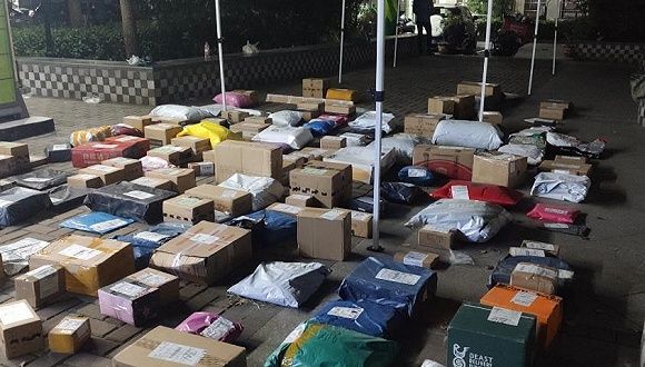 双十一期间上海某小区的快递(拍摄:杨霞)