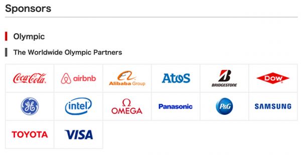 在爱彼迎签约之前,奥运会目前共有13家TOP赞助商,分别为来自中国的阿里巴巴;来自美国的可口可乐(CocaCola)、宝洁(P&G)、陶氏化学(Dow)、维萨(Visa)、通用(GE)、英特尔(Intel);来自日本的普利司通(Bridgestone)、松下(Panasonic)、丰田(Toyota);另外还有韩国的三星(Samsung)、法国的跨国IT服务管理公司源讯(Atos SE)以及来自瑞士的奥米茄(Omega)。
