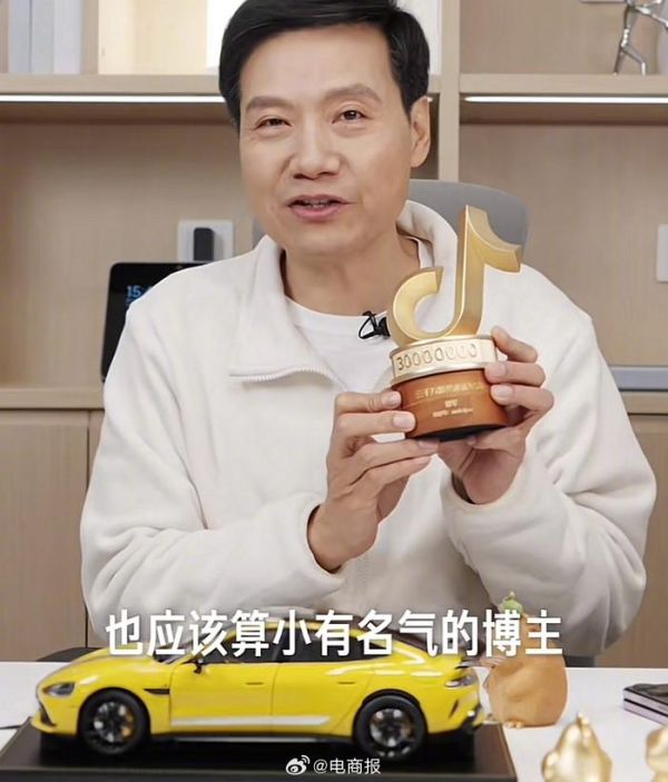 雷军晒抖音3000万粉纪念奖杯,调侃自己在抖音也算“小有名气”了