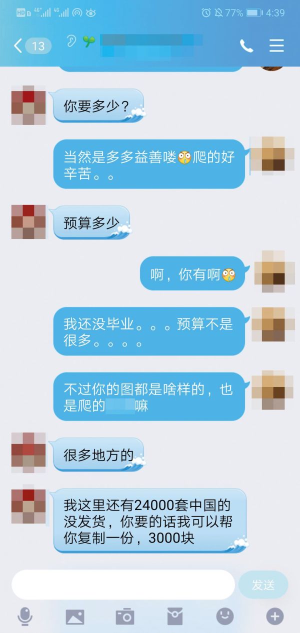 值得注意的是,该店家承认,“这个(使用照片)肯定没有取得人家的同意。”不过,在她看来,这些照片被拿来做研究并无不妥。“不是公布到社交平台或公开网站,肯定是没问题的。”