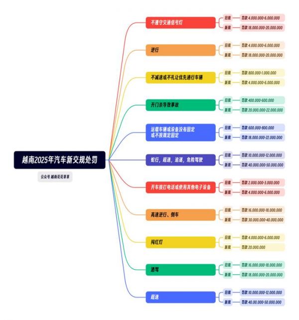 越南2025年新交规生效,很多老司机表示,不会开车,不敢开车了。这估计是越南史上最严交规,文末附上笔者整理的部分交规处罚对比,确实翻倍,翻了好几倍。