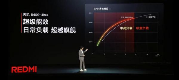 该手机搭载REDMI与联发科、Arm联合调校的天玑8400-Ultra芯片,规模与2024年12月23日发布的天玑8400相同,CPU部分基于全大核设计,共有8颗Cortex-A725核心,性能提升41%,能耗降低44%,GPU部分则是旗舰同级G720 MC7,性能提升24%,能耗降低42%。