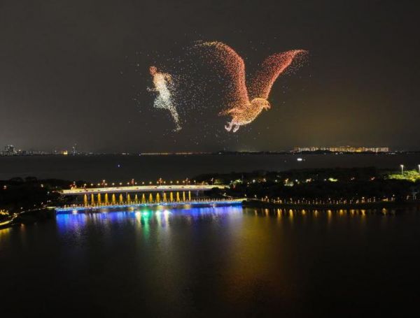 其基于无人机集群组网技术在通信、路径规划、碰撞避免等方面的进步,可实现高效协同互动、信息共享和完成任务,具有环保、安全、创新的特点,在大型活动、文旅驻场、空中智媒广告、城市亮化工程等场景中均有广泛应用。