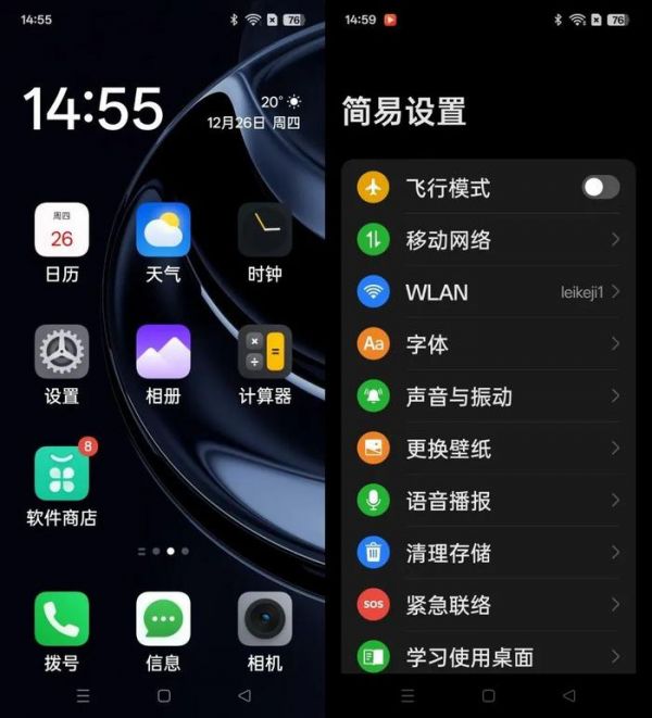 以OPPO为例,在开启“老年模式”(在ColorOS里的名称为“简易模式”)后,手机的字体、图标、App布局都会发生变化,甚至连外放音量都会相对更高一些,算是比较契合老年人使用的一些改动。