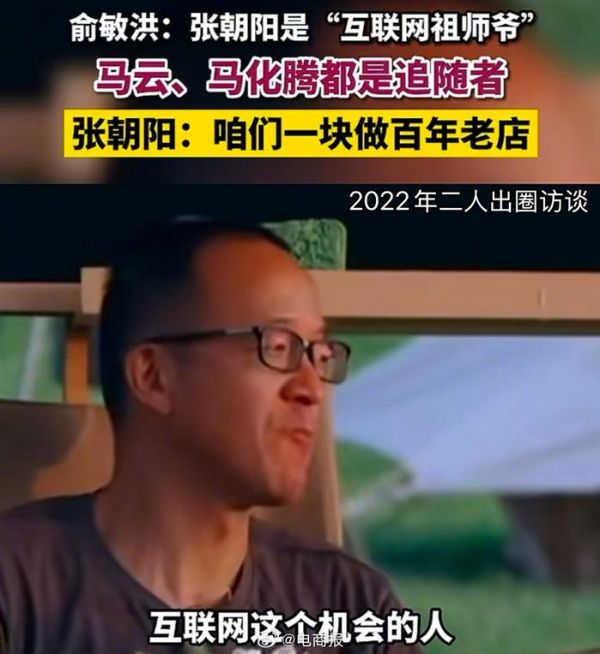 俞敏洪邀请张朝阳对谈,曾称张朝阳是“互联网祖师爷”,马云、马化腾、李彦宏都是他的追随者。
