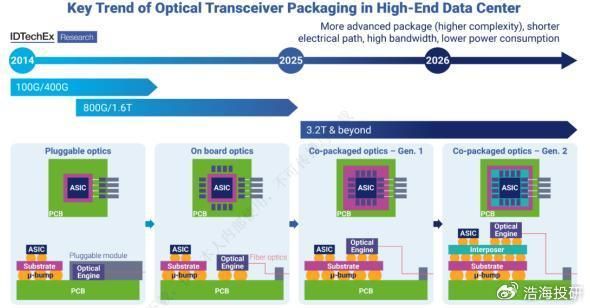 所以,笔者预判,国外的CPO市场更有可能加速渗透。比如之前全球光互连论坛OIF发布业界首个3.2T共封装模块实施协议,就可见对高速率板块对CPO的需求之迫切。目前国外很多云计算数据中心采用的光模块正处于向800G速率进军的阶段。