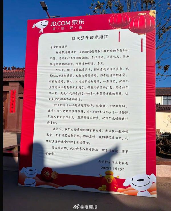 光明村全村给刘强东写感谢信了,还有村民送了锦旗