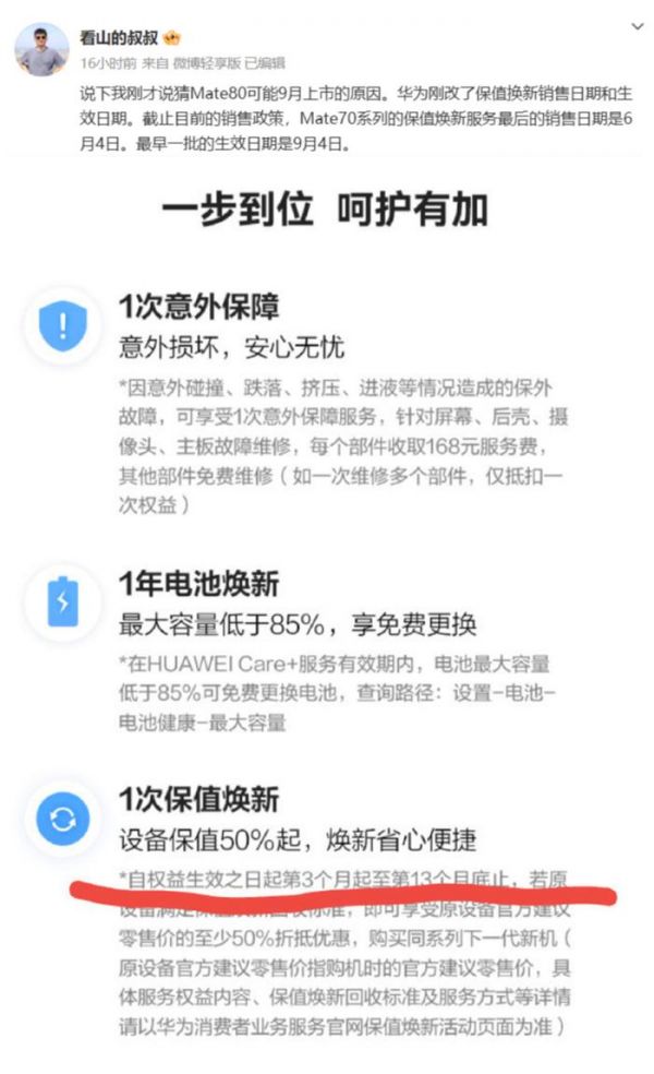 因此,有理由推测,华为Mate 80系列可能会在保值换新服务生效后的某个时间点发布,即2025年9月。