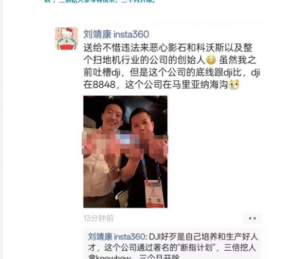 “送给不惜违法来恶心影石和科沃斯,以及整个扫地机行业的公司的创始人。虽然我之前吐槽DJI,但是这个公司的底线跟DJI比,DJI在8848,这个公司在马里亚纳海沟。”