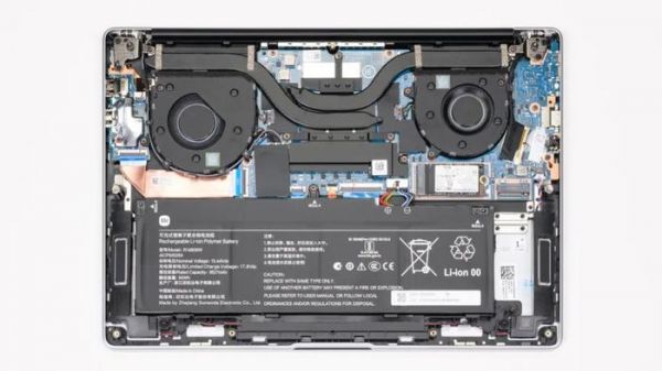 上图是REDMI Book 14 2025的拆机实拍图,双风扇双热管的组合。