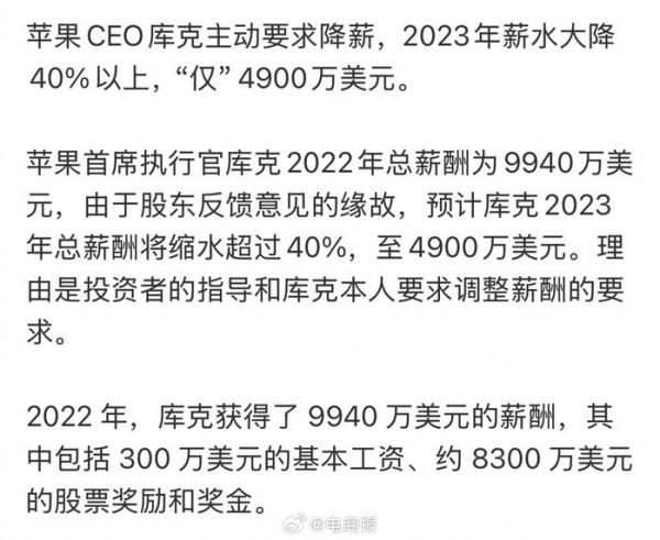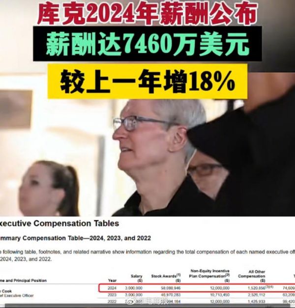 地表最强工资?苹果CEO库克2021年薪酬曝光,超6亿人民币