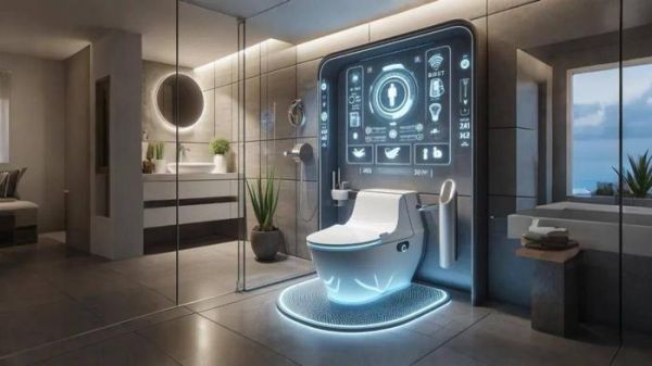 图:未来的智能马桶示意图比如智能马桶监测到异常的健康指标后,智能花洒会根据用户的状态自动调节合适的水温和水质,并在浴室柜的屏幕上显示健康数据、提供健康预警和个性化建议,赋予了卫浴更多的情感温度与关怀。