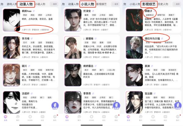 Home页面的“互动对象”,有12种选择,涵盖了病娇、腹黑、豪门、高冷、毒舌、傲娇、校园等多种网文经典tag。