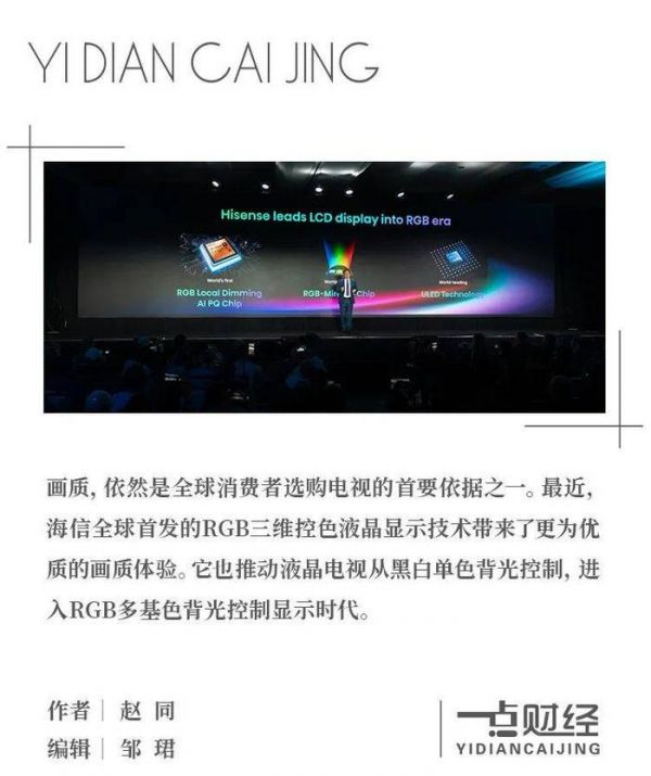 可以说,RGB三维控色液晶显示技术就是电视显示技术上的“关键力量”,推动液晶电视从黑白单色背光控制进入RGB多基色背光控制显示时代,而海信则成为背后的“关键先生”。
